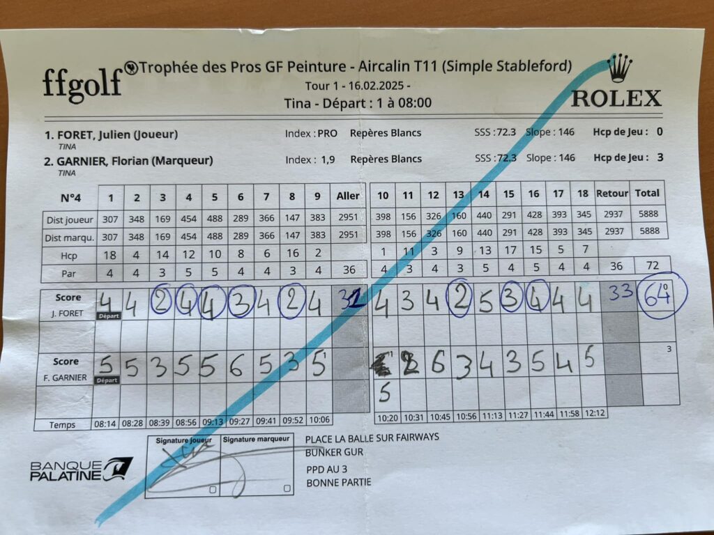 Julien sait encore jouer au golf. En février 2025, ce fut huit birdies, aucun bogeys pour une carte de 64. Propre et net, sans bavures.