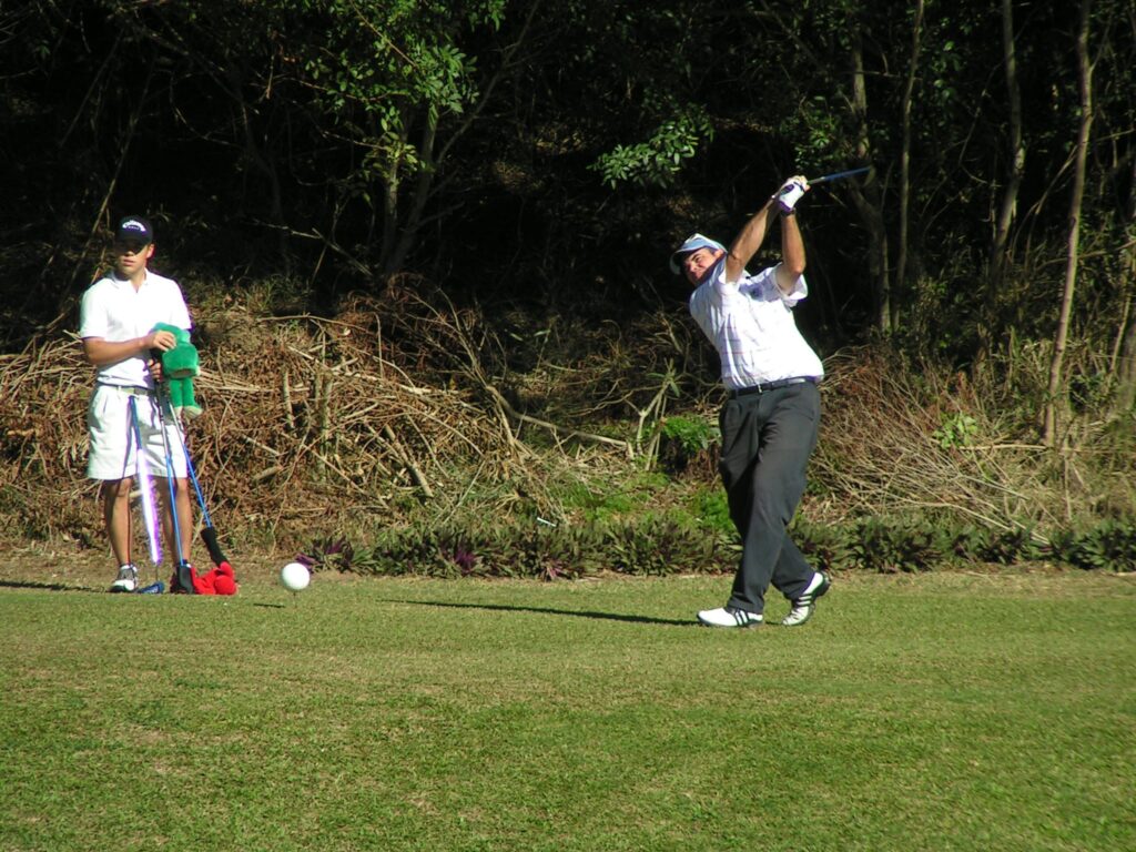 Départ du trou 9 à Tina, par 4 en dogleg droit à 90° de 270 mètres, avec un green surélevé, en compagnie de Tony Raillard, en 2005. Il fut un temps où les joueurs cherchaient le green. « J’ai touché ce green en 1 de nombreuses fois ! Si je compte mes meilleurs scores sur chaque trou, à Tina, j’arrive à -33 (eagles sur tous les pars 5, sur les pars 3 sauf le 13, et les pars 4 suivants : 1, 2, 6, 7, 9, 12, 15 et 18, ndlr). »