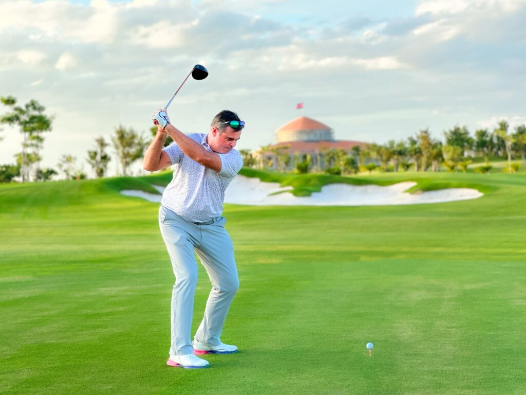 J’y suis arrivé en septembre 2023, huit mois avant l’ouverture du premier 18 trous (mai 2024, ndlr). Le deuxième ouvrira fin 2025. Ma première tâche a été de recruter les chefs de département et les 170 caddies. Aujourd’hui, j’ai 300 salariés sous ma responsabilité, 450 sont prévus d’ici un an. Mes journées ? 11 heures de travail en moyenne, 6 jours sur 7. Je commence le job à 5 heures quand le Premier ministre vient jouer, deux fois par semaine, sinon à 7h30 pour inspecter les parcours, les tontes, les bunkers. Ensuite, c’est réunion avec les chefs de département, de la Maintenance, des Operations, du Food & Beverage, etc. Après, c’est le contrôle des réservations, la gestion des emails, des rapports à lire et annoter, l’inspection du deuxième parcours en construction et un tour pour saluer les clients. Je joue deux fois par semaine, je fais 18 trous, une fois avec des clients et une fois avec mon équipe. Chez moi, c’est aussi du golf de nuit jusqu’à 20h30-21 heures certains soirs. Et je signe 40 à 50 documents par jour, je gère les commandes du proshop et je prépare l’ouverture de l’académie et du fitting center.