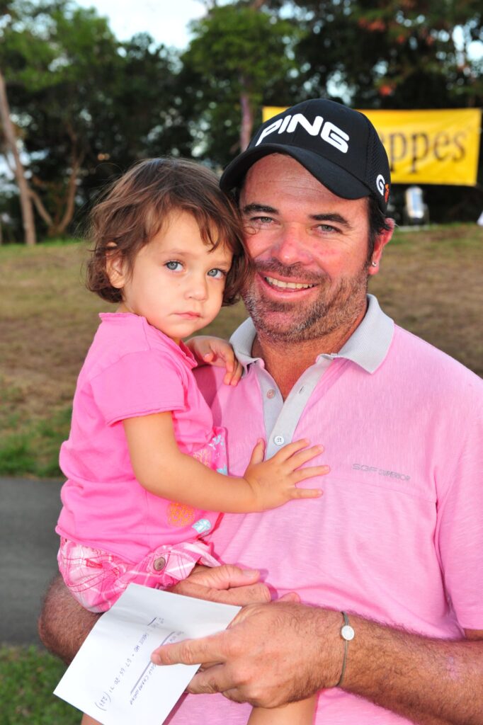 En photo avec sa fille Inès, en 2009 à Tina, Fabrice participe au PGA organisée par le club. Il finit seul deuxième, avec des cartes de 65, 67, 80 et 71.