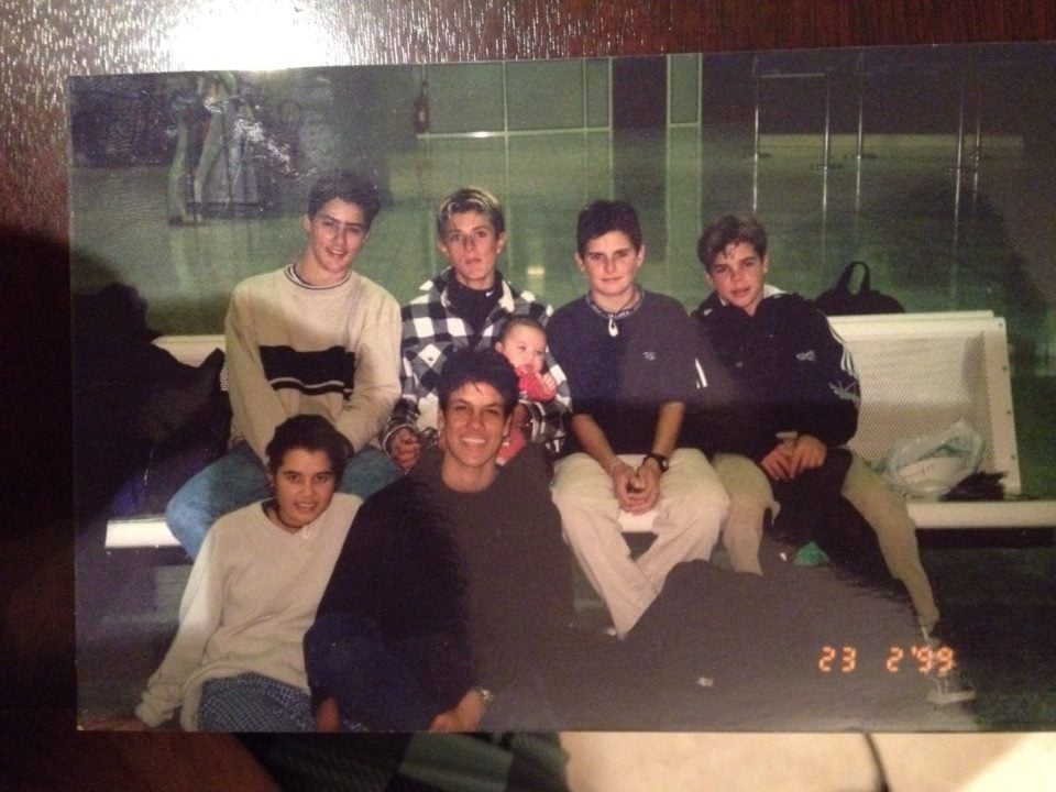 Julien Foret a le polo rayé bleu et blanc, et est entouré de futurs excellents joueurs de golf. À Tahiti, en 95 ou 97 ?